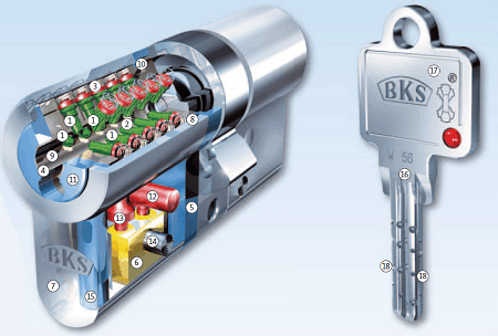 ein BKS Schlüssel mit dem dazugehörigem Janus Sicherheitssystem